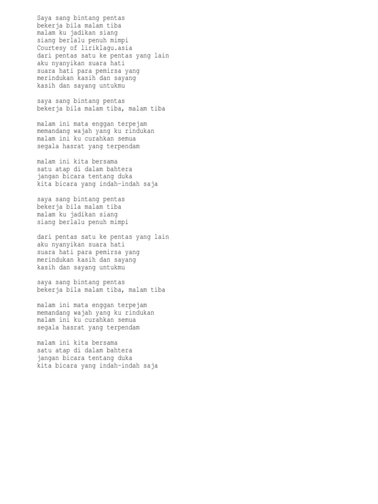 Remaja di Sudirman Nongkrong Lewat Jam 10. Tika Nasir - Bicara Menanti-Hype Beat Media-YouTube. Malam Malam Bila rinduku bertambah dalam Kau datang lagi dengan kenangan Oh betapa dinginnya malam ini Kasih Bila malam ku bertambah kelam Seribu kisah melintas mata.